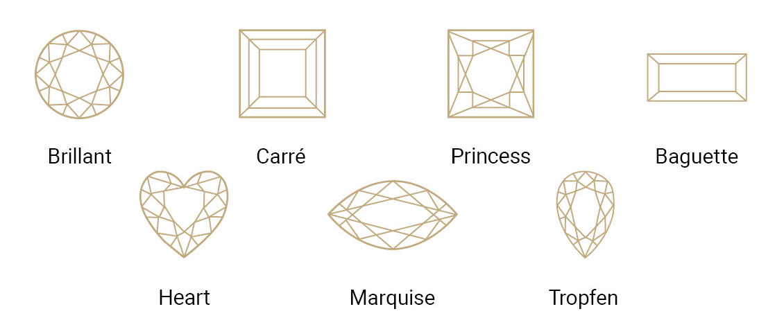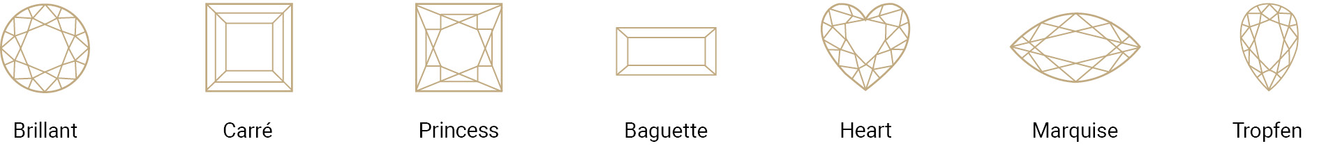 Talrijke ander slijpvormen vullen het assortiment aan, zoals Carré, Princess, Baguette, Hart, Marquise en Peer.